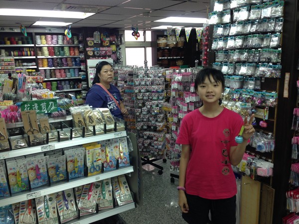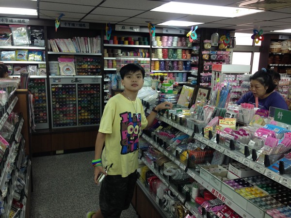 之後往中原大學方向駛去,停好車,一起去由申甲逛逛,一進去就先搭電梯直上五樓美術用品部,一行人只有媽媽沒有去過,馬上見識到這間有點誇張的美術文具行,果然有點不一樣。好長一段時間大家都沒做手工藝 DIY 的活,看了這麼多零件材料,一方面又想要動手,另一方面又覺得懶懶的,最後好像也沒買什麼。倒是三寶對於一個像是盆栽的筆筒,以及上面插滿了其實是筆的枝葉很感興趣。爸爸因為聽錯價格,還聳甬他們要買整盆,最後惦惦價格,實在蠻貴的,不太值得,看看就好。