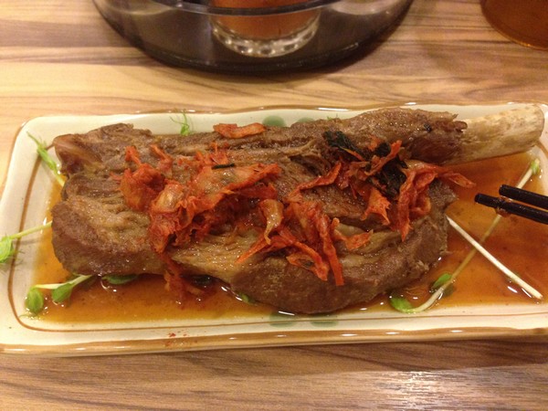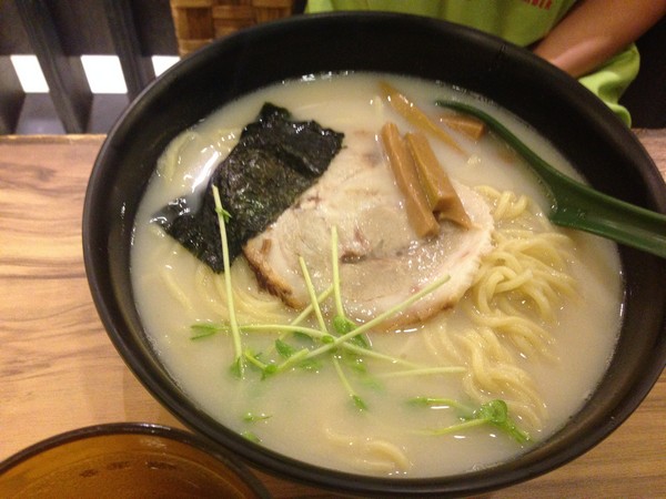 每個人都點了一道拉麵,結果加起來有超過八百時,店家還有招待一道小菜,沒想到贈送的居然還是一個蠻大的日式豬肋排,大家很快就吞食搶光了。