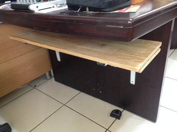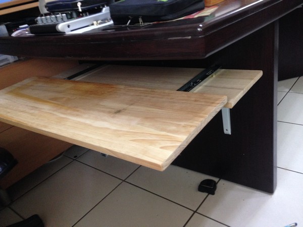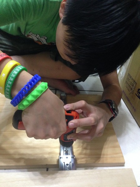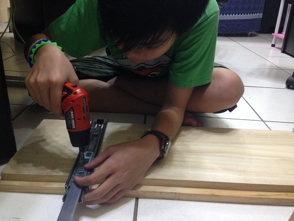 接著把預先做好的滑軌板子固定在桌腳上,完工。