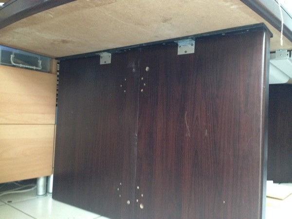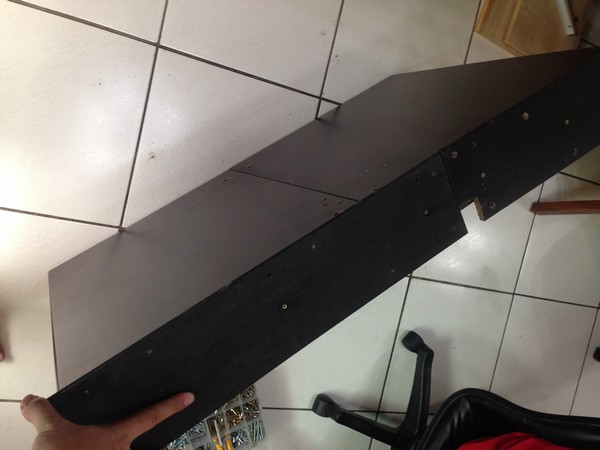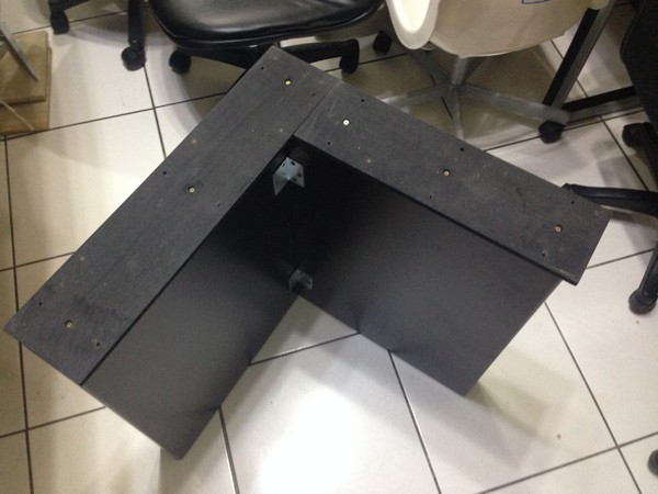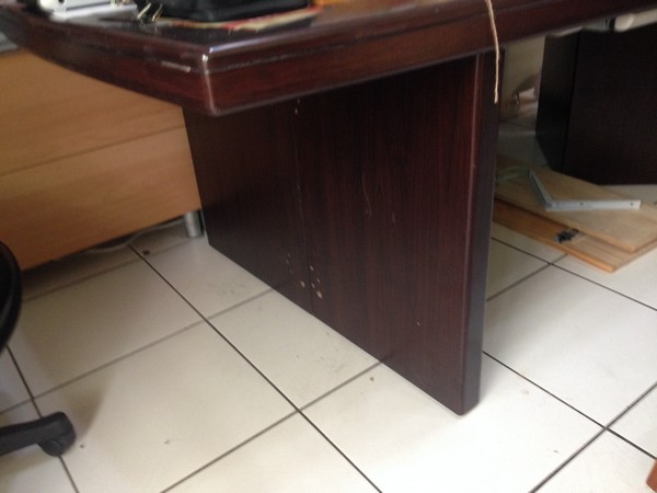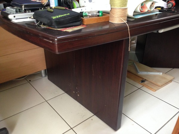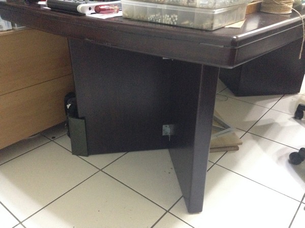 原本的桌子是炳良的,看得出為了安全,補強了非常多的釘子 (事實上,是有點過頭了XD),估計上需要六根的釘子,結果釘了約22支,還多了兩塊有礙美觀的L型角鐵。