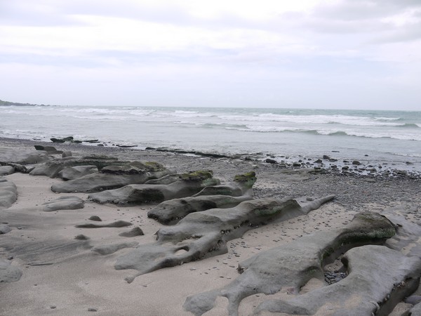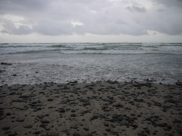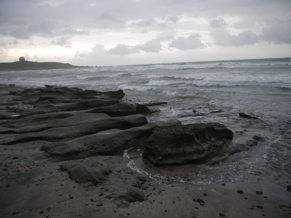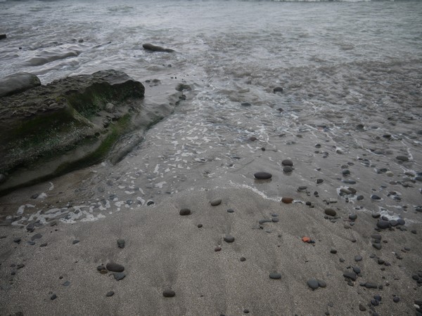 到了麟山鼻,把車子往海邊轉去,感覺冷冷清清的,到達海邊甚至一台車子都沒有。我們下車走到海邊,由於退潮,露出的黑色礁石及海底看來噁心,沙岸上又佈滿了垃圾及蟲子,只一下子就決定離開,而且麟山鼻,自此可以出局了 (除非是要騎車吧)