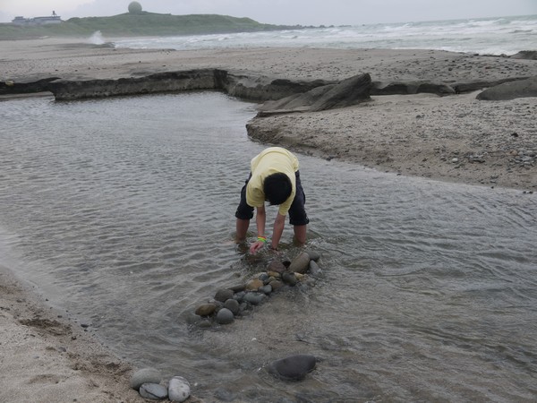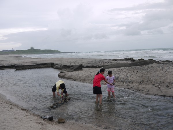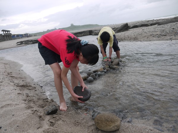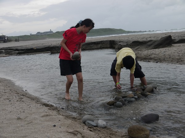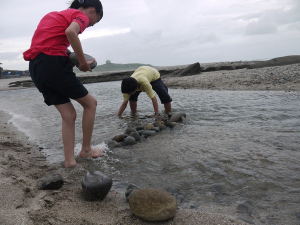 因為又回到沙灘,孩子們還是想再去玩水,徵求我的同意後,再度進行二度工程。