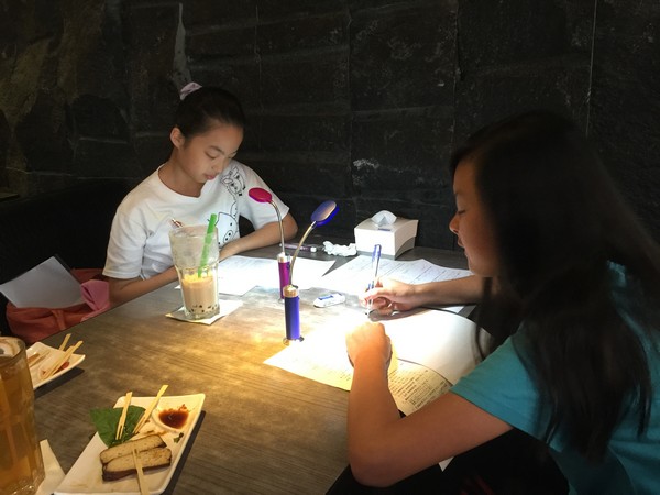 朱宗慶上課的等候時段,因為即將要期末評量,所以都有帶書去看。