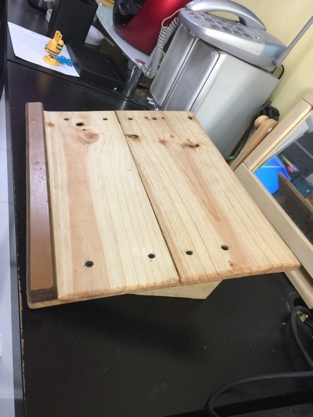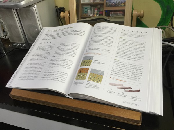 很厚重的百科全書,用手舉著看很痠又不方便,索性直接到陽台找找現成的木材,快速地做個書架來使用,看書變得輕鬆了。