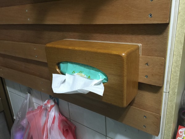 這個木頭面紙盒,估計應該是 IKEA 買的,只有外框架,卻沒有底板,真的是標準的 IKEA 風格,能夠少做的就就是會少一點點。