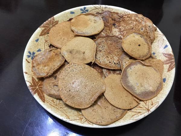 不想浪費材料,於是在媽媽建議下,摻入了鬆餅粉,份量依舊隨意倒,但結果算是救回來了,不錯吃啊!