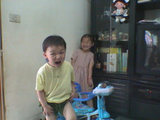照片中的三輪車是阿婆送給大寶的生日禮物,這兩個也跟著興奮莫名。