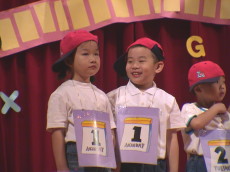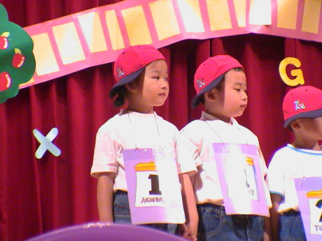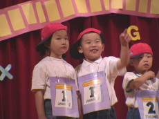 德傳幼稚園的英文才藝表演,婷婷上台:『My name is Tina. What's your name........』嘰哩呱啦講了一大堆。(in 五股工商展覽中心)