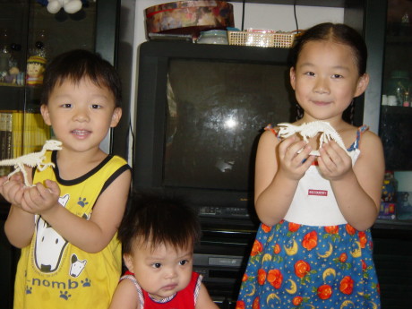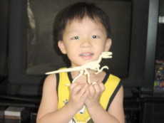 兩姐弟還蠻喜歡這個恐龍化石的,玩一玩後就把它們收到櫥櫃裡了。