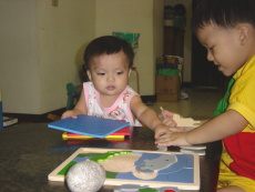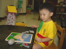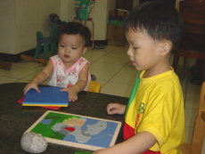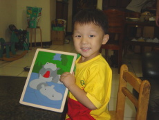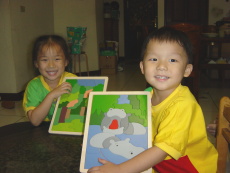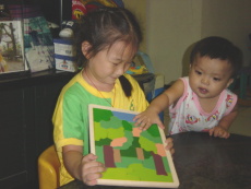 大寶爸爸很喜歡買玩具給小朋友,這次又是什麼呢?是拼圖,一人一種,當然大寶是比較簡單的,婷婷達達都很聰明,教一次就可以自己拼起來了,只有大寶,只會拆掉,還不會裝回去。