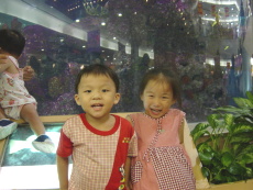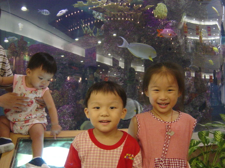 婷婷達達很小的時候 (那時還沒有大寶),假日媽媽就常常一個人騎車車帶他們倆到大葉高島屋去看魚,大葉高島屋的大魚缸,是很多小朋友喜歡駐足停留的地方,記得每次去的時候,都要買個紅豆鯛魚燒,『邊看魚、邊吃魚』